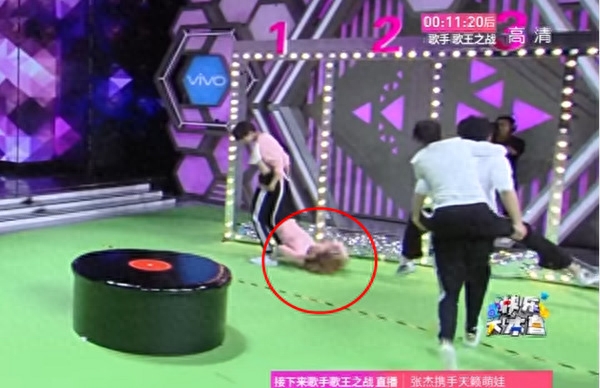 节目《快乐大本营》15日播出,鬼鬼在游戏中被183公分高的宋威龙背着,为了抢快完成任务,2人使劲冲第一,在男方弯腰准备把她放下来时,一个转身,她却因为笑得太开心已经把手松开,形成脚还被抓着,上半身却直挺挺往下摔的画面,后脑直接撞地。