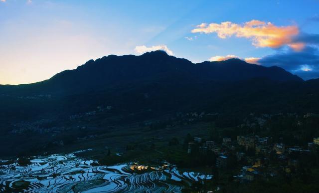 就是这片被哈尼族人开采出来的梯田,每天都这着美丽的景观。日出时,朝霞四射,日落时,云卷云舒,下雨时,烟雾朦胧,天晴时,金光闪闪……不管春夏秋冬,不管阴晴圆缺,这里都演绎着美丽的景观,变化莫测……