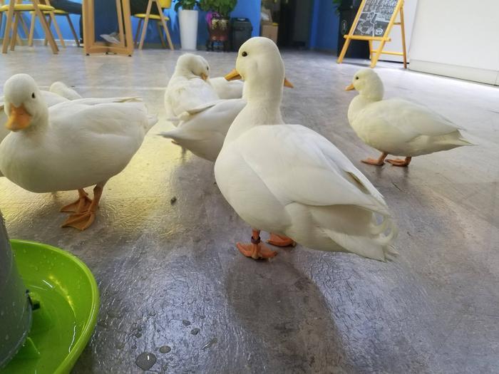 鸭天生就是直肠子的动物,走到哪儿就拉到哪儿,率性而为。它们几乎无法做到定点位置排泄。