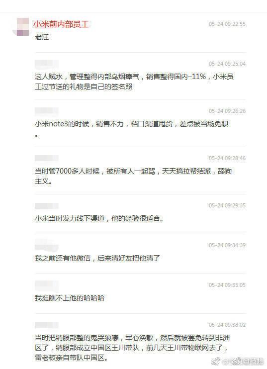 5月23日晚,小米集团人力资源部向发内部邮件,宣布因违反《中华人民共和国治安管理处罚法》第四十四条规定,辞退小米非洲地区负责人、公司副总裁汪凌鸣。其中第44条规定,猥亵他人等,处5日以上10日以下拘留。汪凌鸣2017年上半年入职小米,此前负责非洲地区部业务。(素材来源:凤凰网科技)