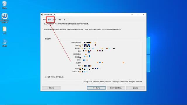 第二种方法,键盘同时按【Windows】和【R】键,弹出运行,在框中输入字母【dxdiag】,完成后点击【确定】,此时点击【显示】,就能看到在设备中显卡的信息。
