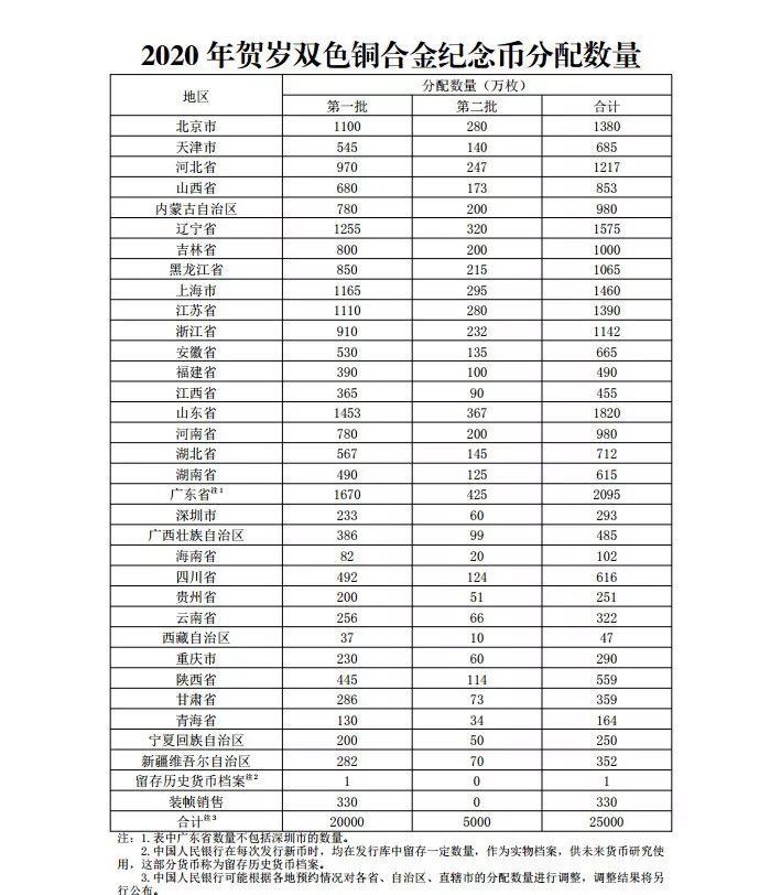 纪念币分配数量