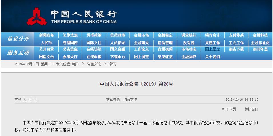 预约时间:2019年12月19日至12月22日(同时办理贺岁币两批次预约业务)