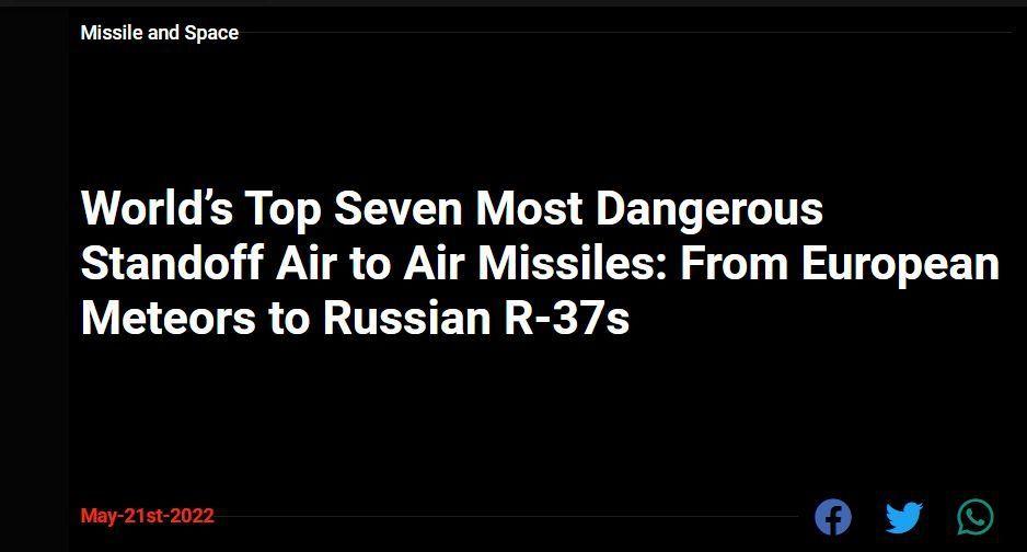 第二和第三名是俄军的R-37M和K-77M空空导弹,其中R-37M是在R-33导弹基础上研制的超远程空空导弹,长度和PL-15差不多,但是非常粗壮,重量达到了0.6吨,主要装备米格31截击机。这款导弹射程在398千米,据说速度为6马赫,也是俄军为了打击敌方大型飞机研发的重型空空导弹。