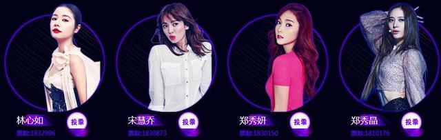 凭借《太阳后裔》中姜暮烟一角,宋慧乔可谓是再次爆红,俘获大批网友的心,今年排名一直稳居前十;林心如、郑秀妍、郑秀晶投票稳步上升,名次暂无变化。