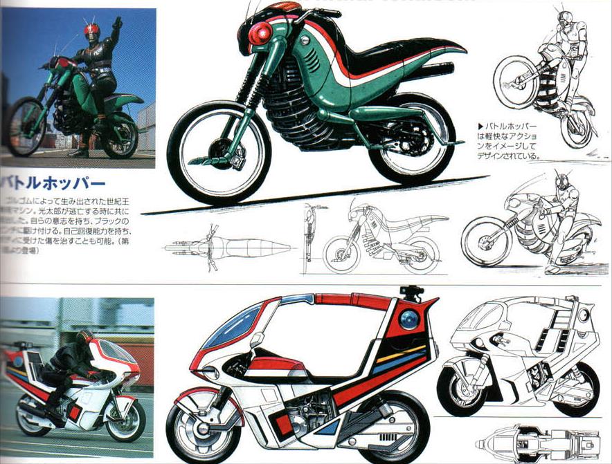 骑士Black还拥有两台机车。绿色的“战斗蝗虫”机车由“戈尔戈姆”组织开发,被南光太郎逃跑出时夺走。南光太郎变身成骑士Black后,召唤时就会自动驶出。