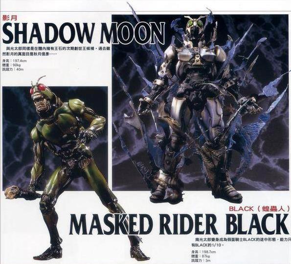 南光太郎找准机会逃了出来,成为了守护人类的假面骑士BLACK(“黑日”)。而未能逃出的秋月信彦,则成为了邪恶组织的代表“影月”。