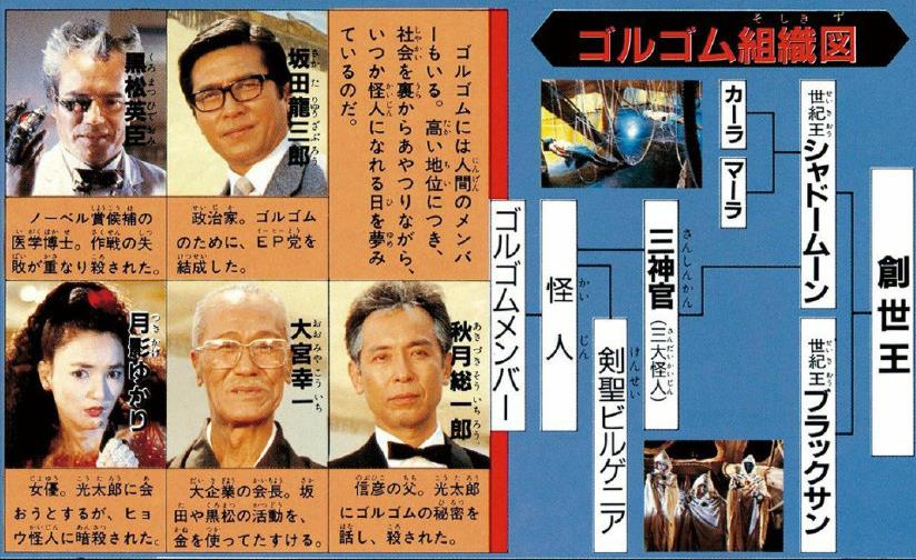 在反派怪人的皮套造型上,由擅长设计的雨宫庆太负责。剧组也专门为这个“戈尔戈姆”组织设计了一套管理体系。我们一起来简单了解一下。