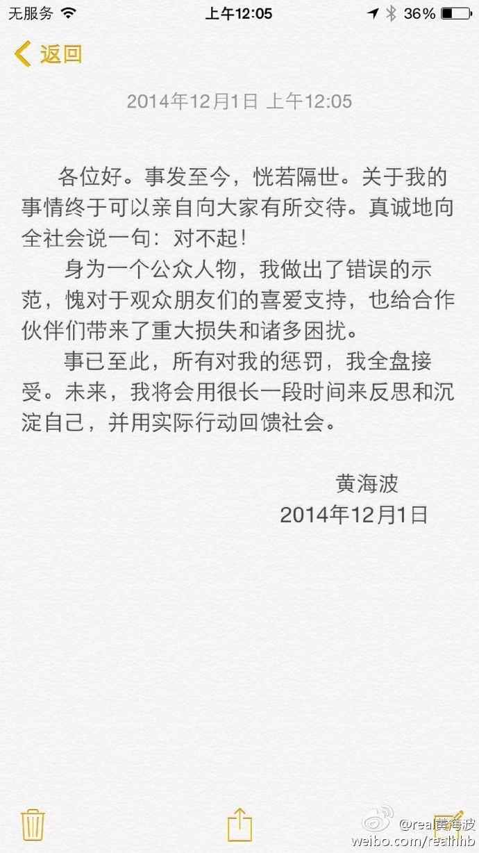 自嫖娼风波后,黄海波沉淀了下来,微博发表的消息都是正能量,感恩,节日祝福等消息,但每一条留言下都是粉丝们真切殷勤的呼唤着他归来。