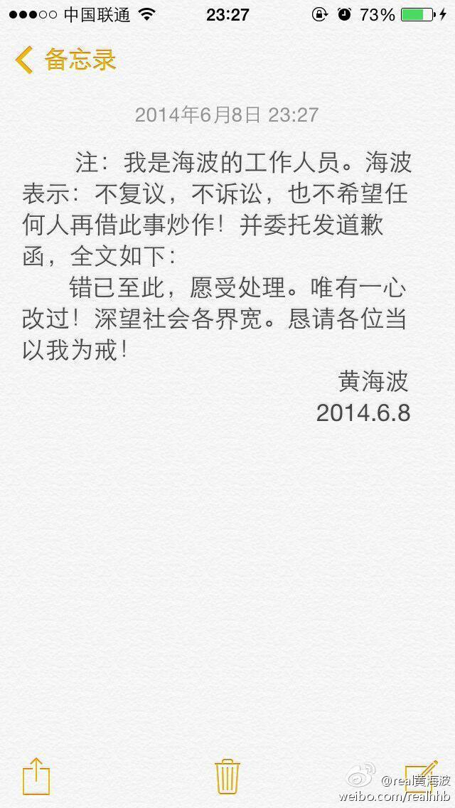 为此,黄海波专门做出了回应:不复议,不诉讼,错已至此,愿受处理。