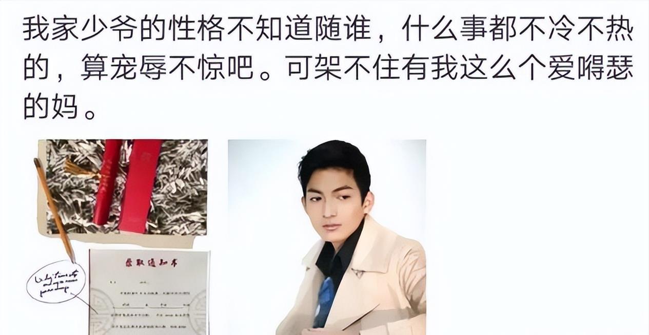 作为母亲的马葭难掩激动,在自己的社交平台上,发布了儿子的录取通知书和照片。
