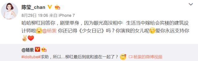 没想到,几天之后,陈莹得知杨紫在提问,于是来到杨紫的微博下互动了。