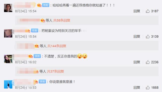 柳红本尊来回答,杨紫看到非常开心,也互动了起来。