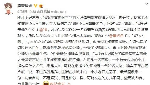 居然有人就跳出来,反驳这篇文章,他就是糯米。难道这个主播是想蹭热度,除了这个原因,渡鸦实在无法理解,人家都没说是谁,你这么激动干嘛。。。。。