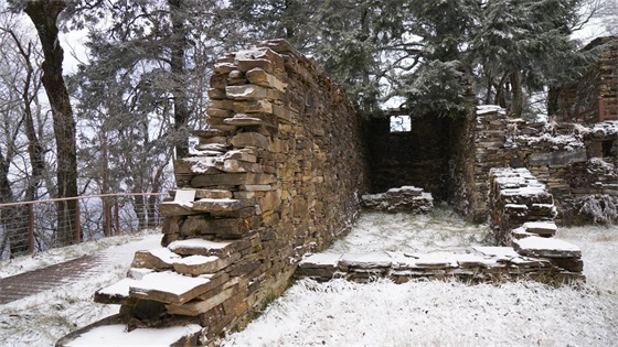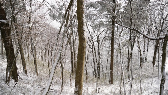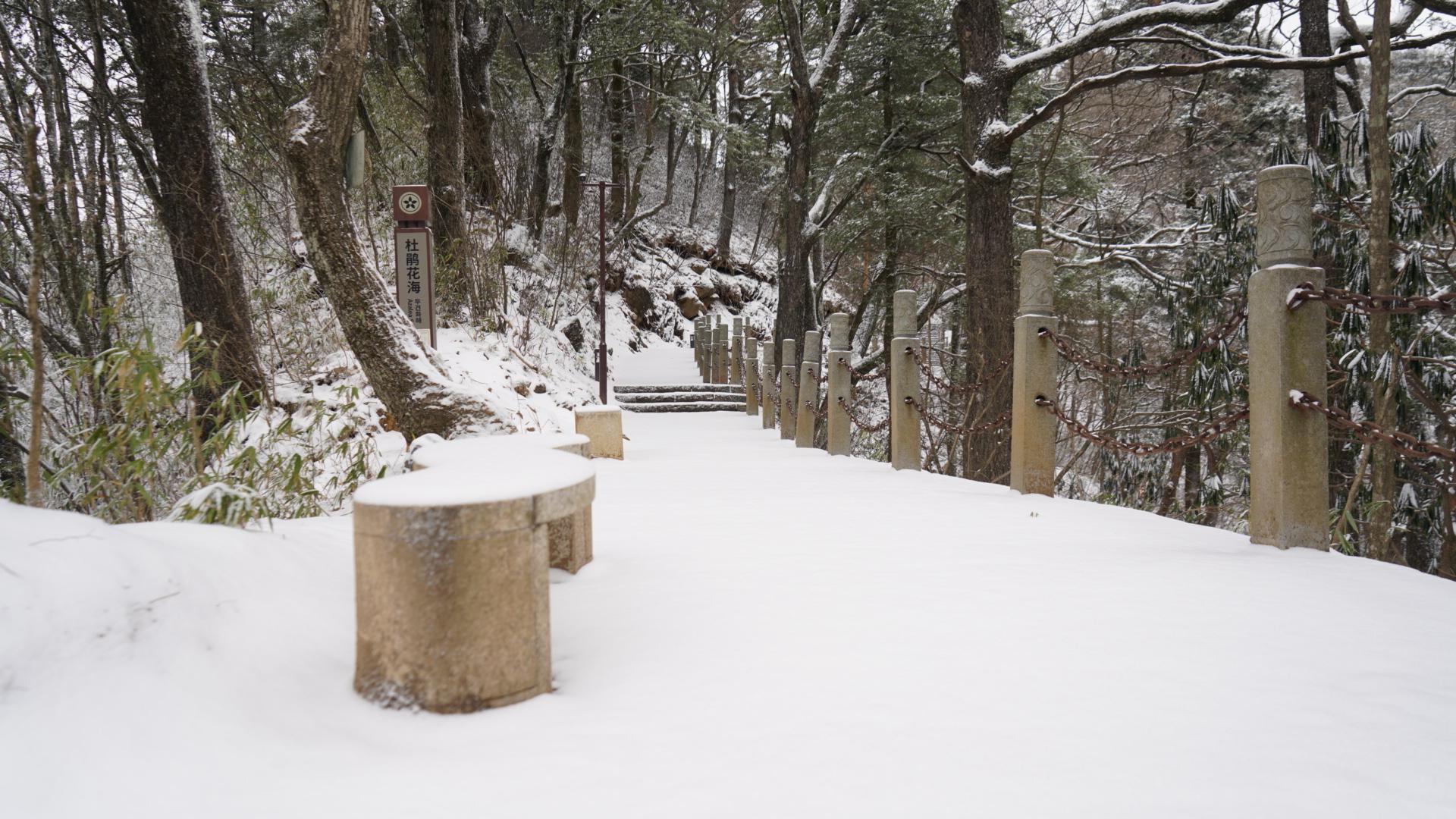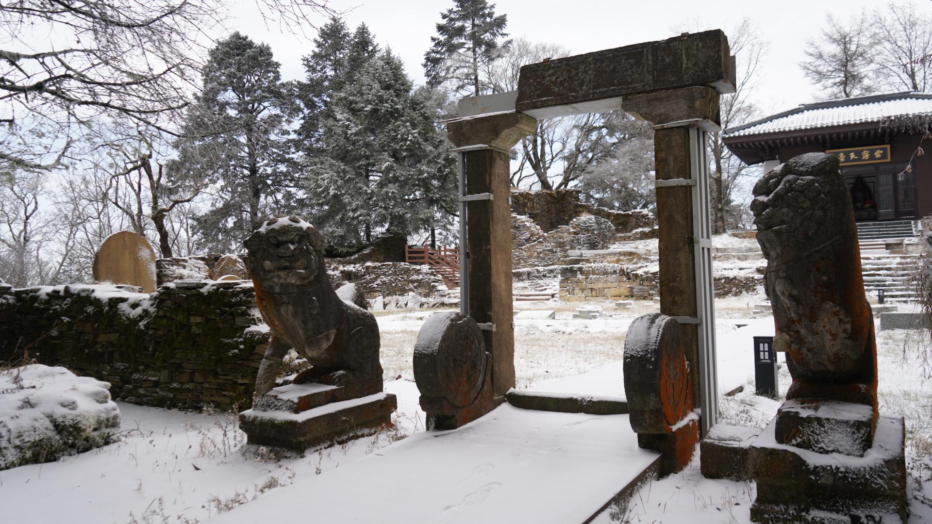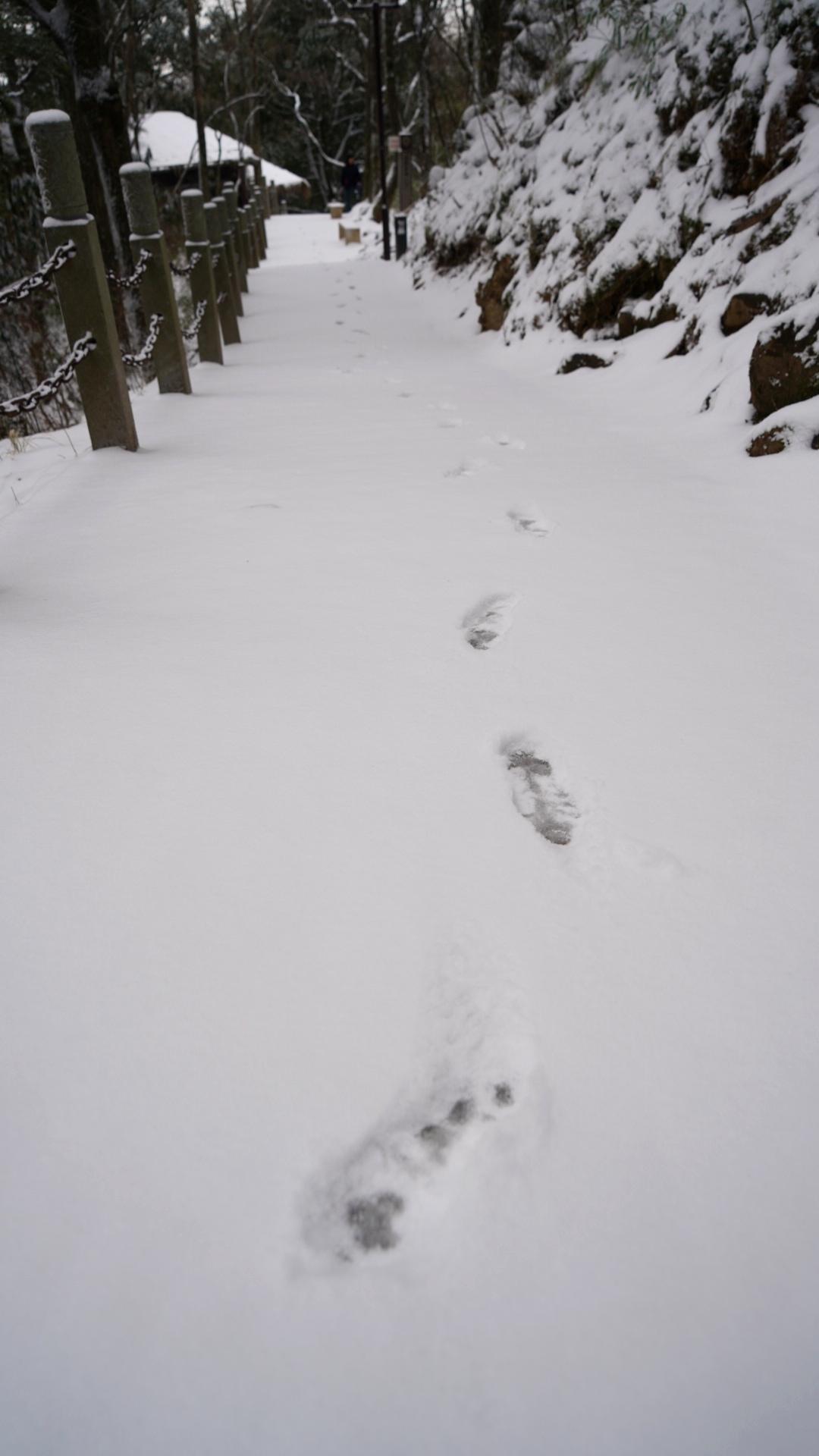 早上进山时下着小雨,购票时服务人员说山上下雪了。心里暗喜:太棒了!进入景区大门先参观博物馆,了解一下鬼谷子的历史。进山的乘车点在博物馆后,游玩人少,我们坐了专车上山,行进中即开始飘雪花,约15分钟左右的盘山路即抵达下车点。打开车门迎面扑来狂欢的雪花,满眼的银装素裹很是令人兴奋。约在一天门(或是二天门)处有一个观景台,刚好雪停,在观景台处看山涧云雾升腾、山体若隐若现,很是壮观。