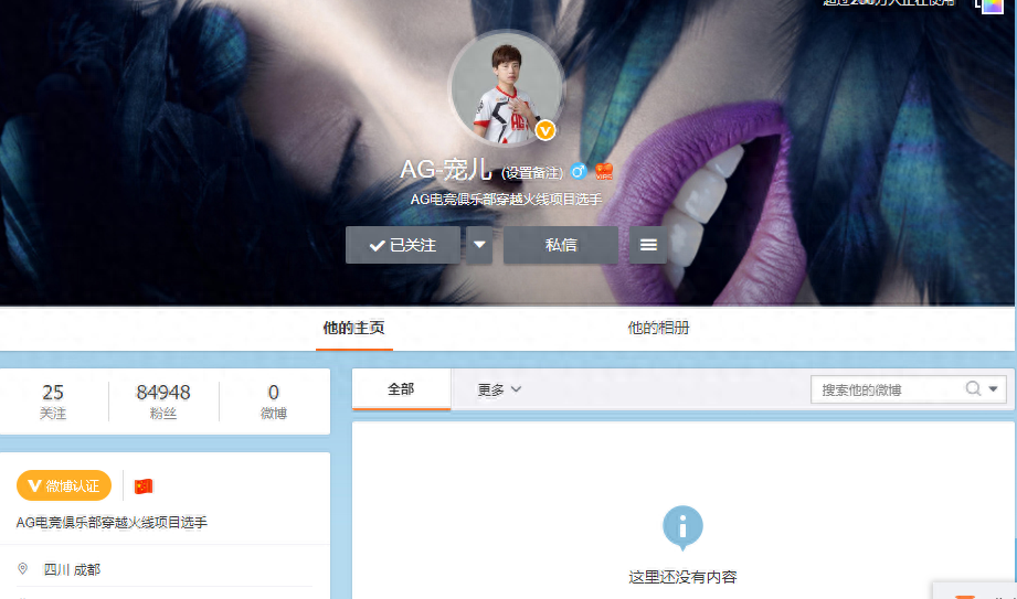 CFS2019中国区总决赛结束了,豪华阵容的AG战队两次败于SV战队,只拿到中国区的亚军,SV霸气斩获冠军,季军同样是老队伍白鲨。比赛结束后,AG战队的选手心情有些低落,粉丝也有些爆炸了,AG的主力选手宠儿更是删微博,小编去看的时候,他的微博已经全部清空了。可能是对比赛中自己的表现太自责了,但这一次的微博清空,小编希望是宠儿的重新开始!
