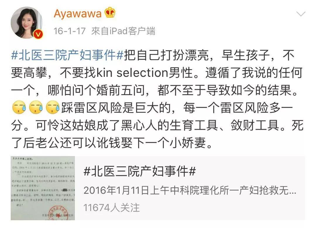 对于这样一个可怜的女人,ayawawa竟然说那是因为她不够漂亮,年纪太大,高攀了男人,才导致悲剧。
