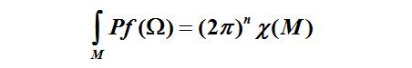 公式中的M表示一个无边界的2n维空间(宇宙),χ(M)是空间M上的欧拉示性数,当n=1时,χ(M)表示空间内孔的个数,Ω是这个空间的曲率。如果知道空间上每一点的曲率,利用这个公式就可以得到宇宙总体形状的信息。