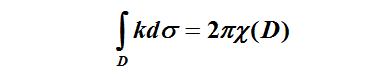等式左端的积分表示高斯曲率k在定向闭曲面D上的积分,χ(D)是空间D上的欧拉示性数,等于1减去曲面上孔的个数,是通常多面体欧拉数v-e+f的推广(其中的v, e, f分别表示多面体的顶点数、棱数和面数)。