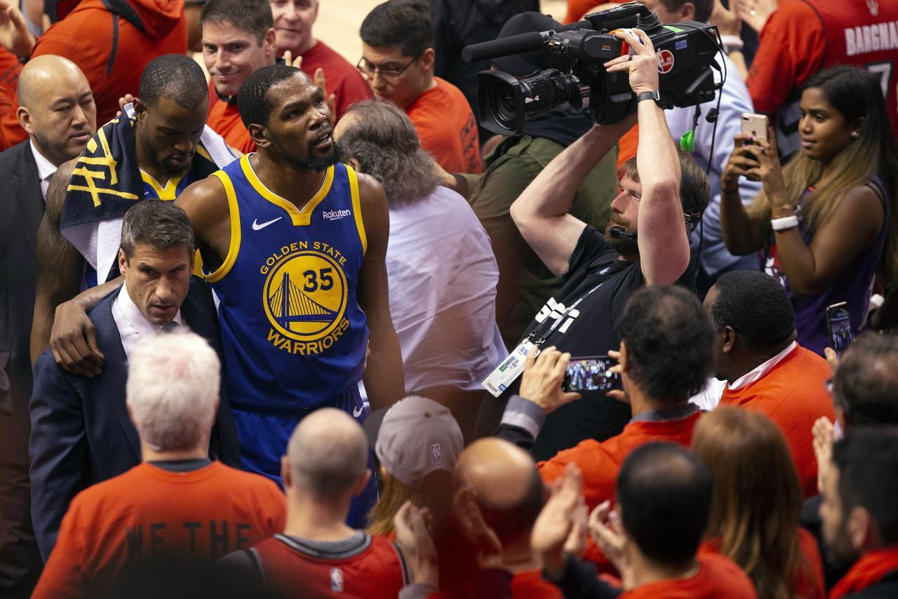 2019年杜兰特首次拉伤小腿是在次轮对阵火箭的第五场中发生的,他后面缺席了这轮系列赛以及西决对开拓者的比赛。考虑到勇士的统治力,他们的最大目标就是在杜兰特回归时追逐第三座总冠军。