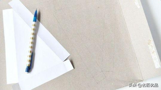 制作步骤:在废弃的纸盒上画出三角盒子的平面图,如图,并将其剪下来,按画好的边将其折好。