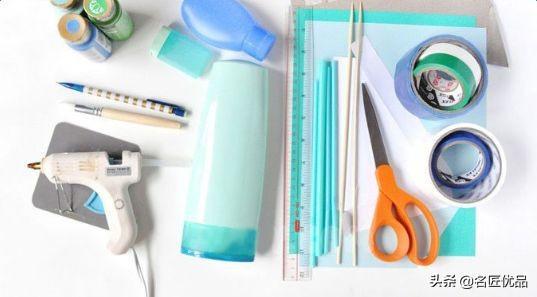 准备材料:废弃瓶子,纸盒,彩纸,剪刀,胶带,胶枪,颜料等。