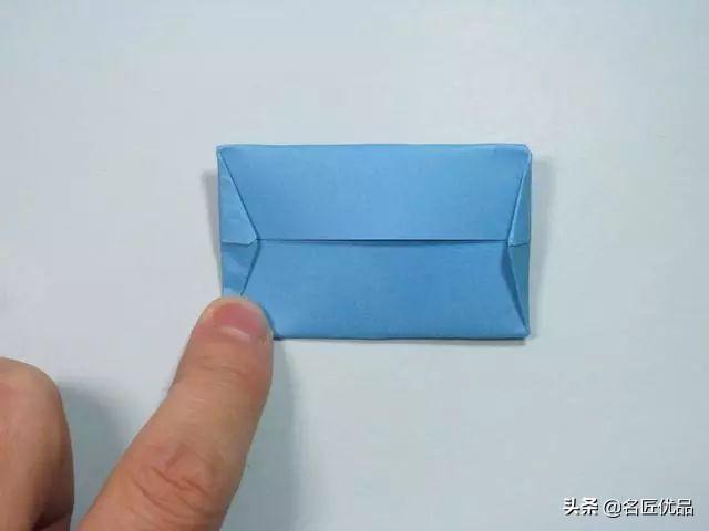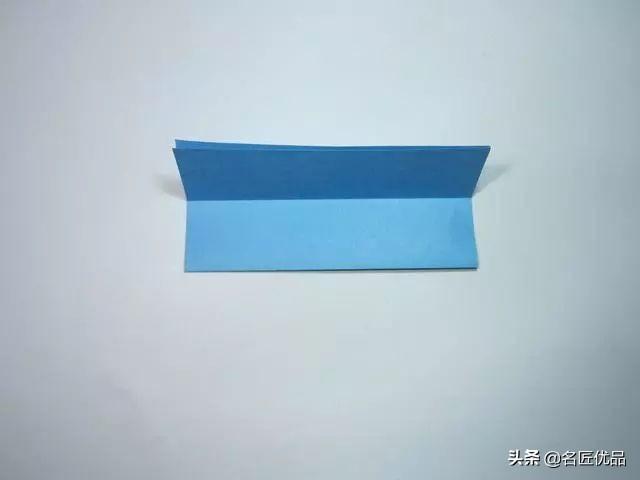 将上下两条边,分别折向中间折痕,两条边与中间折痕对齐。