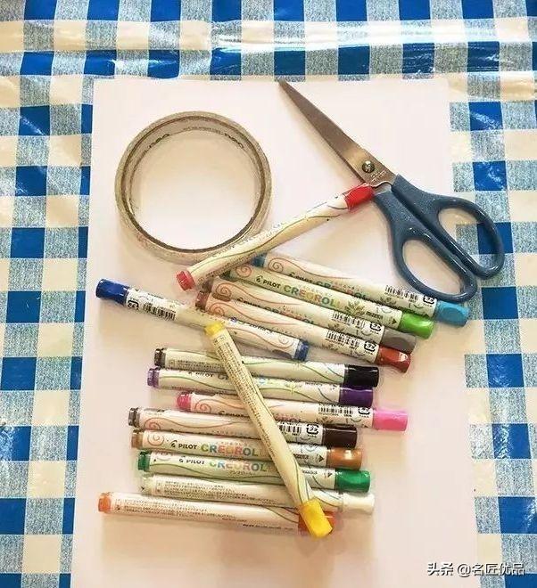 准备材料:彩笔,剪刀,双面胶,卡纸