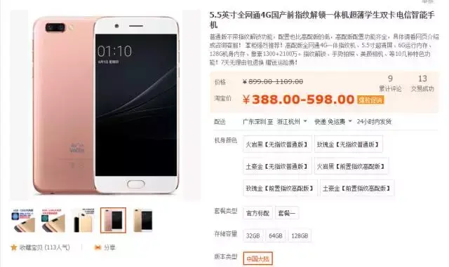这款手机顶配600不到,看外观应该是仿的一加5、oppo r11等
