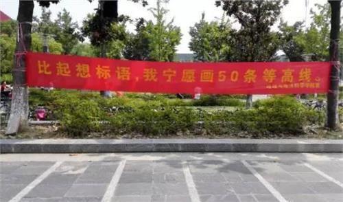不少高校会在校园显眼的地方挂上贴着各种奇思妙想的横幅,起到了极大的宣传效果。