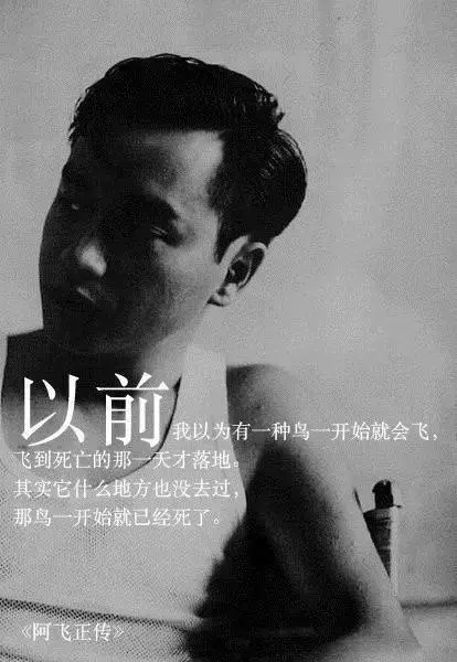 《阿飞正传》里有一段说:“我听人讲过,这个世界有种鸟是没有脚的,它只可以一直飞啊飞,飞到累的时候就在风里睡觉…这种鸟一生只可以落地一次,那就是它死的时候”。