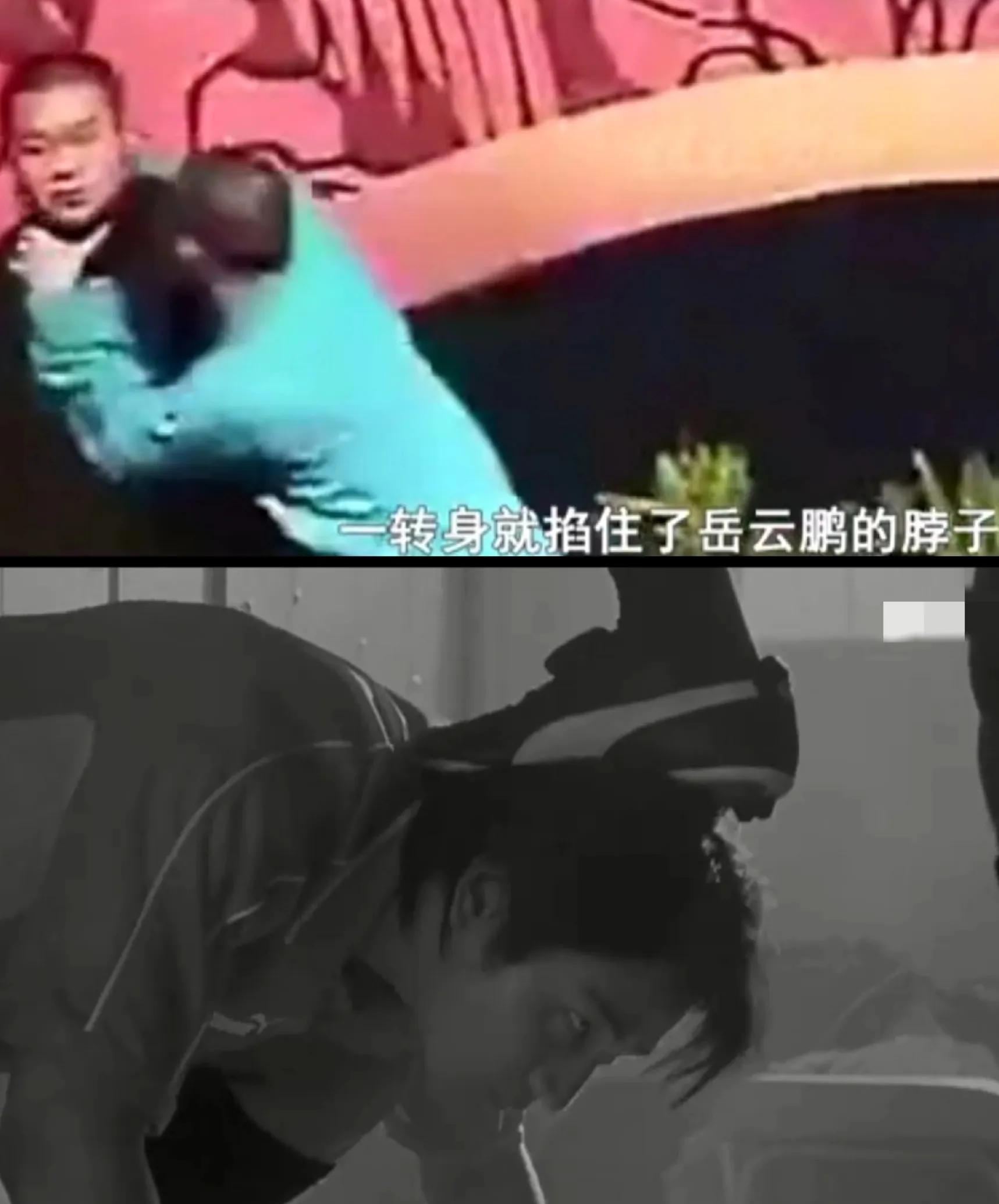 曹云金在给郭德纲告状无果后,突然伸出双手掐住了岳云鹏的脖子,纠缠在了一起。引得众师兄弟都纷纷上前解围,就这样俩人就这么互相纠缠着退到了后台。而观众们自始至终都以为是舞台效果,叫好声不断。