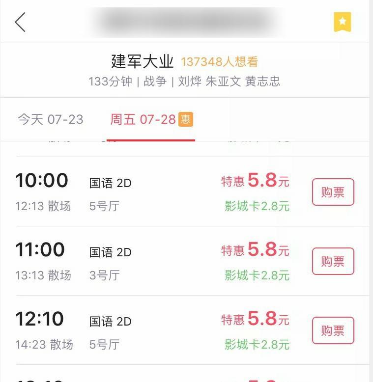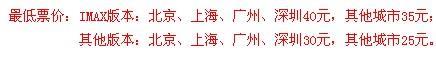 《建国大业》的票价据统计大概在60元左右,《建党伟业》的平均票价大概在50元左右,《建军大业》目前显示的票价: