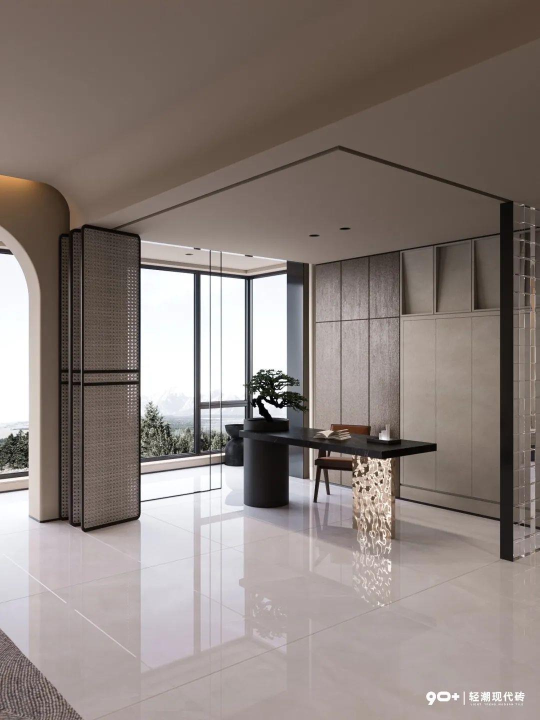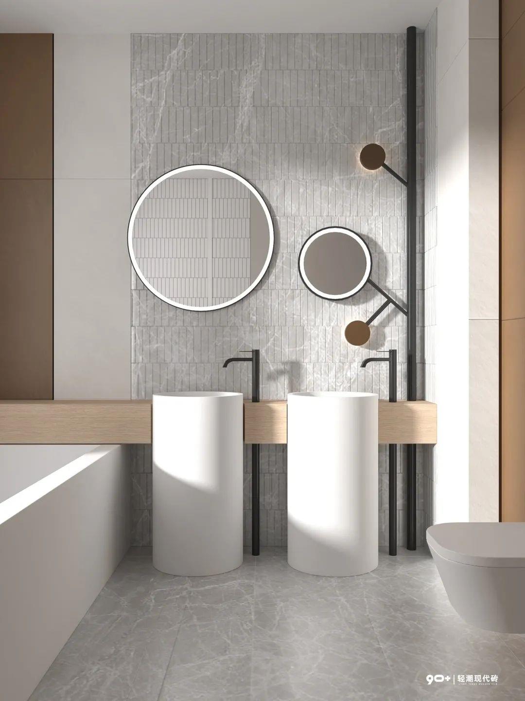 阳光洒向90+浅灰色大理石纹理哑面瓷砖,