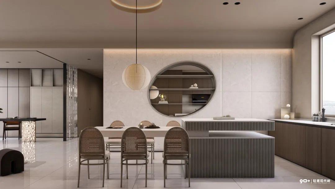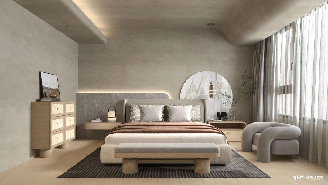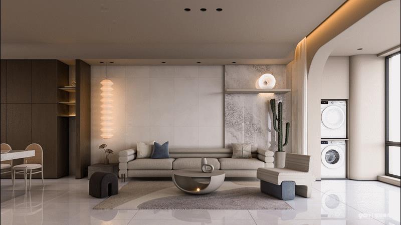 配合流畅的弧形天花造型光,巧妙隐蔽窗帘盒