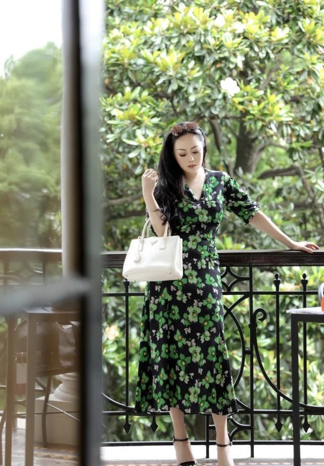 一件普通的连衣长裙,也能让她穿出满满的贵气感,照片中的章小蕙选择了一条黑色碎花连衣裙,纯黑色的裙身打底,衣身上都是翠绿色的小碎花图案,碎花让整条连衣裙更加饱满,颜色图案都很适合夏天,和背景几乎融为一体。