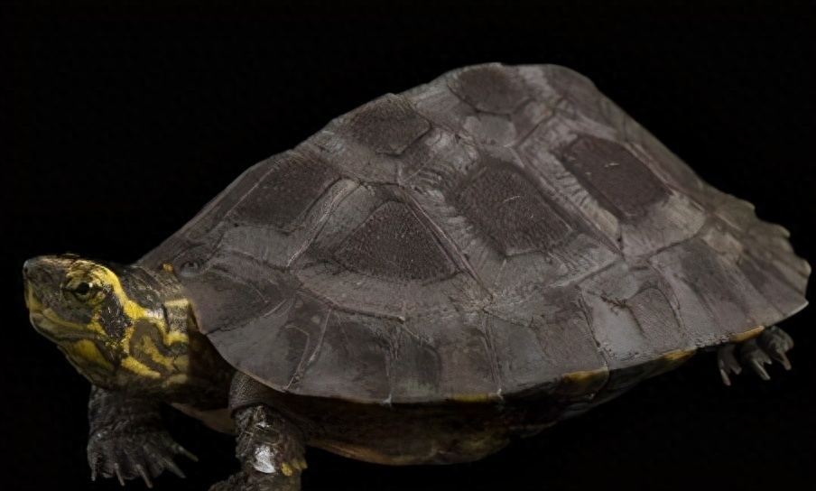 庙龟背甲黑色,高拱且长椭圆形,中央的脊棱明显,头部夹杂着黄色的小斑点。庙龟生活在淡水区域,但是据说也是可以短时间的生存在海水中哦。