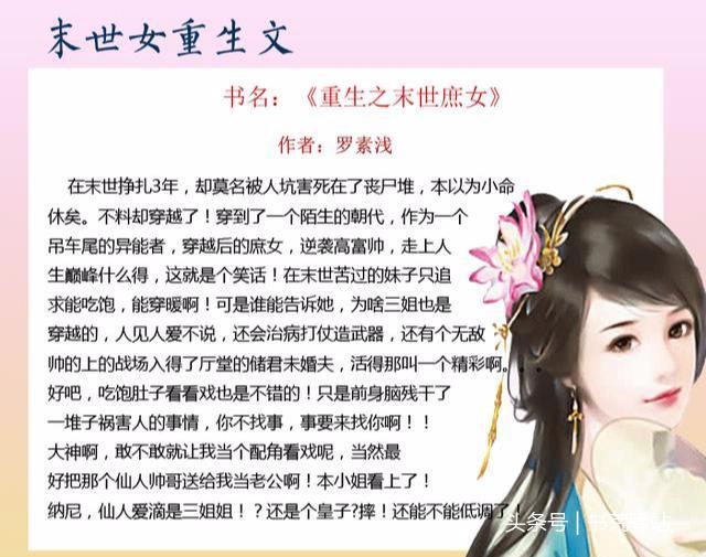 书评:很轻松欢快的一篇小说,女主在末世之前就是一个宅女,在末世的生活一直都计划的很好,让自己在末世中蹦跶了很久,可惜上天没有次次都庇护她,终究老马失前蹄,被丧尸发现,导致了重生的命运,不过重生之后竟似乎并不能如预想的一般,继续当米虫,感受古代的有趣生活啊,身边的人是不是都会给她下绊子,似乎还有一个穿越女的存在,这日子要怎么过啊?女主就在这样欢快又有趣的古代日常中虐虐小人,勾搭帅哥,倒是过的如鱼得水!