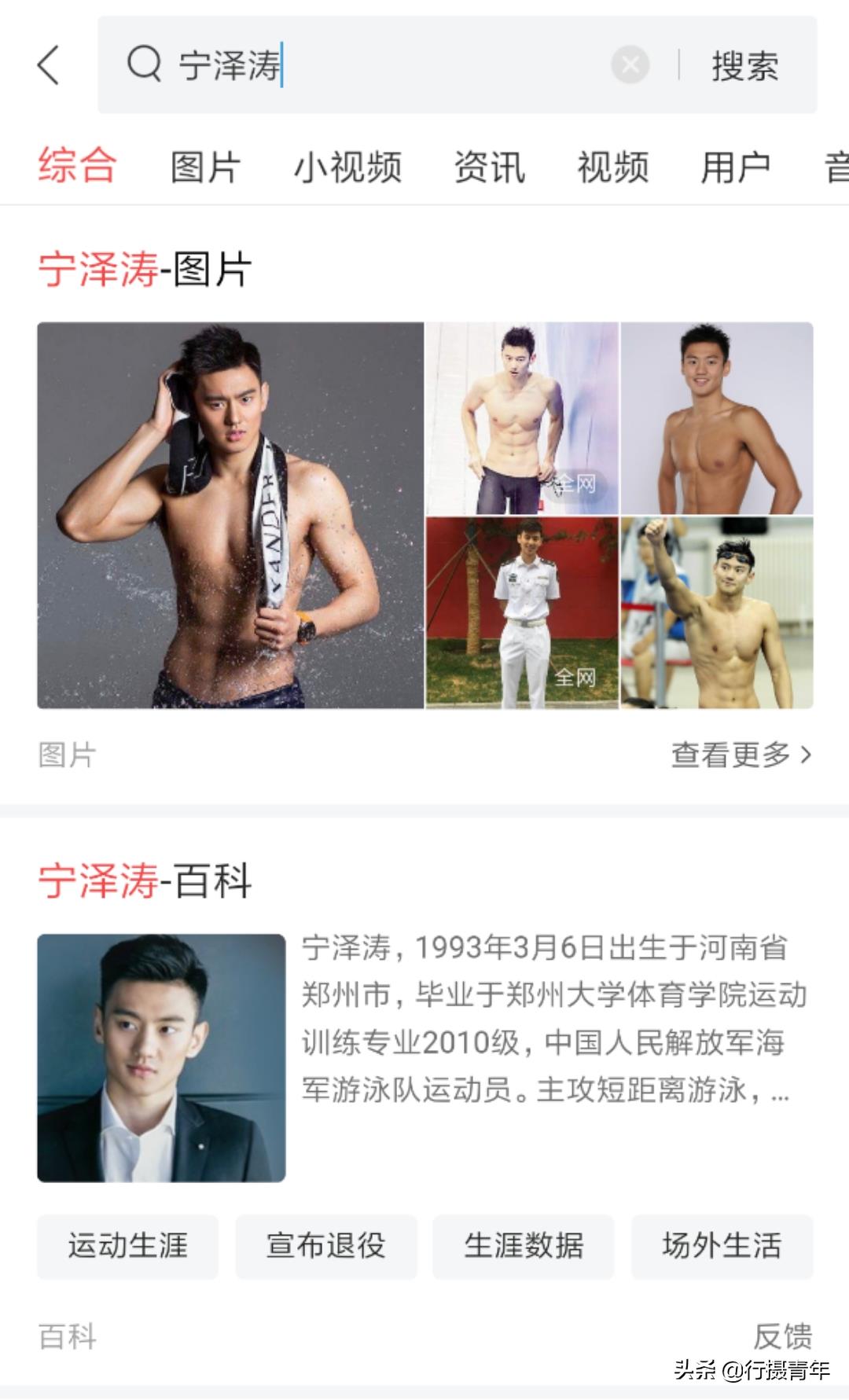 以宁泽涛为例,您在头条主页搜索他的名字就可以看到他的照片和相关介绍,全网信息很全面。