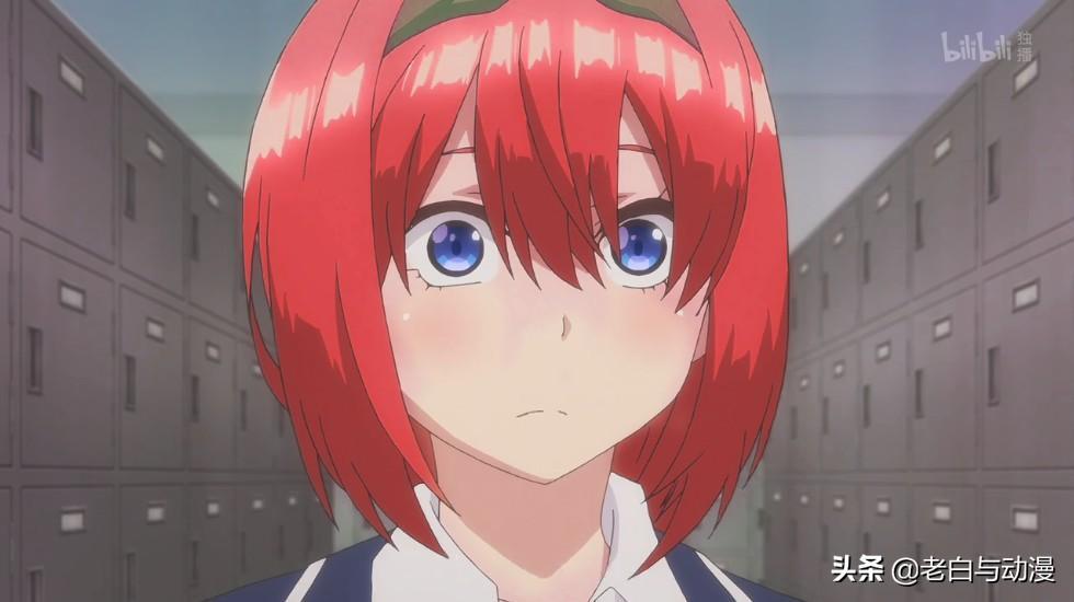 上面这位是四叶,四叶也是比较好认的,毕竟头发短,但是当四叶和一花发色相同的时候,这两人其实还有有点难认出来,不过从细节上来看,四叶的头发好像多一点。在第七集,风太郎利用四叶先进去的方法,然后依次让其他四姐妹伪装成四叶混进学校。