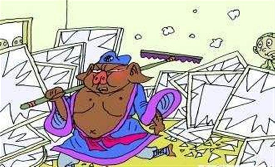 现代诗配图(周延锋):新编幽默寓言——猪八戒照镜子