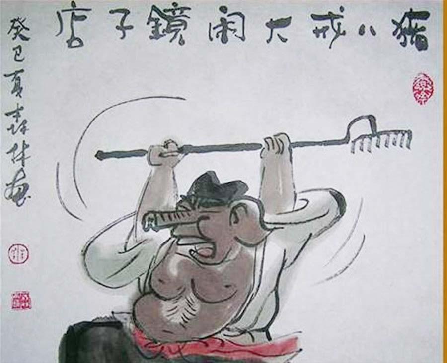 现代诗配图(周延锋):新编幽默寓言-猪八戒照镜子