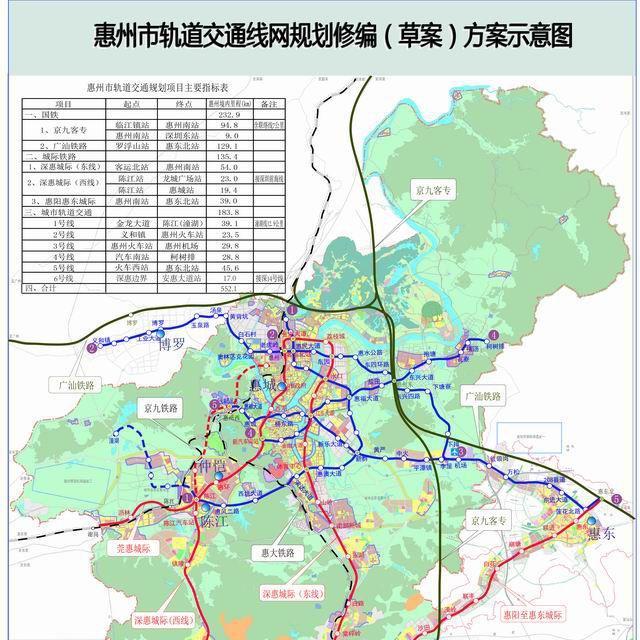 (惠州城市轨道交通规划示意图,规划的5条对接深圳地铁线的轨道交通暂未公布)