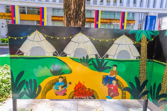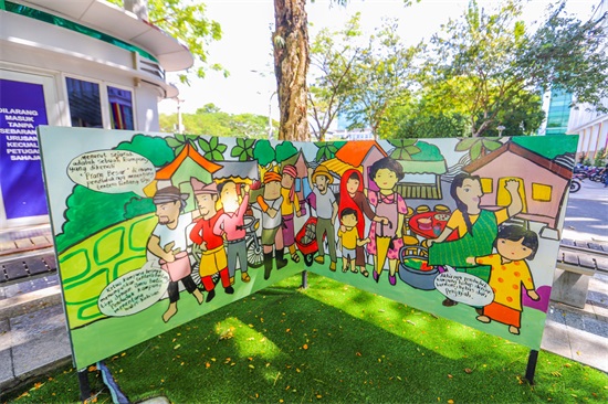然后,这里社区里面有许多彩绘墙画,上面都是一些本地文化方面的内容,也是非常有艺术气息的。