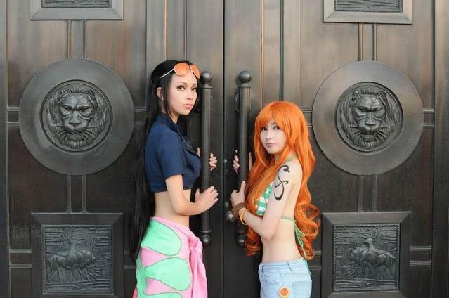 接下来这张COS不光有娜美,还有罗宾。作为草帽海贼团中仅有的两名女性成员,娜美和罗宾的颜值在《海贼王》中可以算是最顶级的了,而且两人是属于不同类型的美女,娜美青春活泼,罗宾成熟稳重。这张COS不管是娜美还是罗宾还原度都很高。