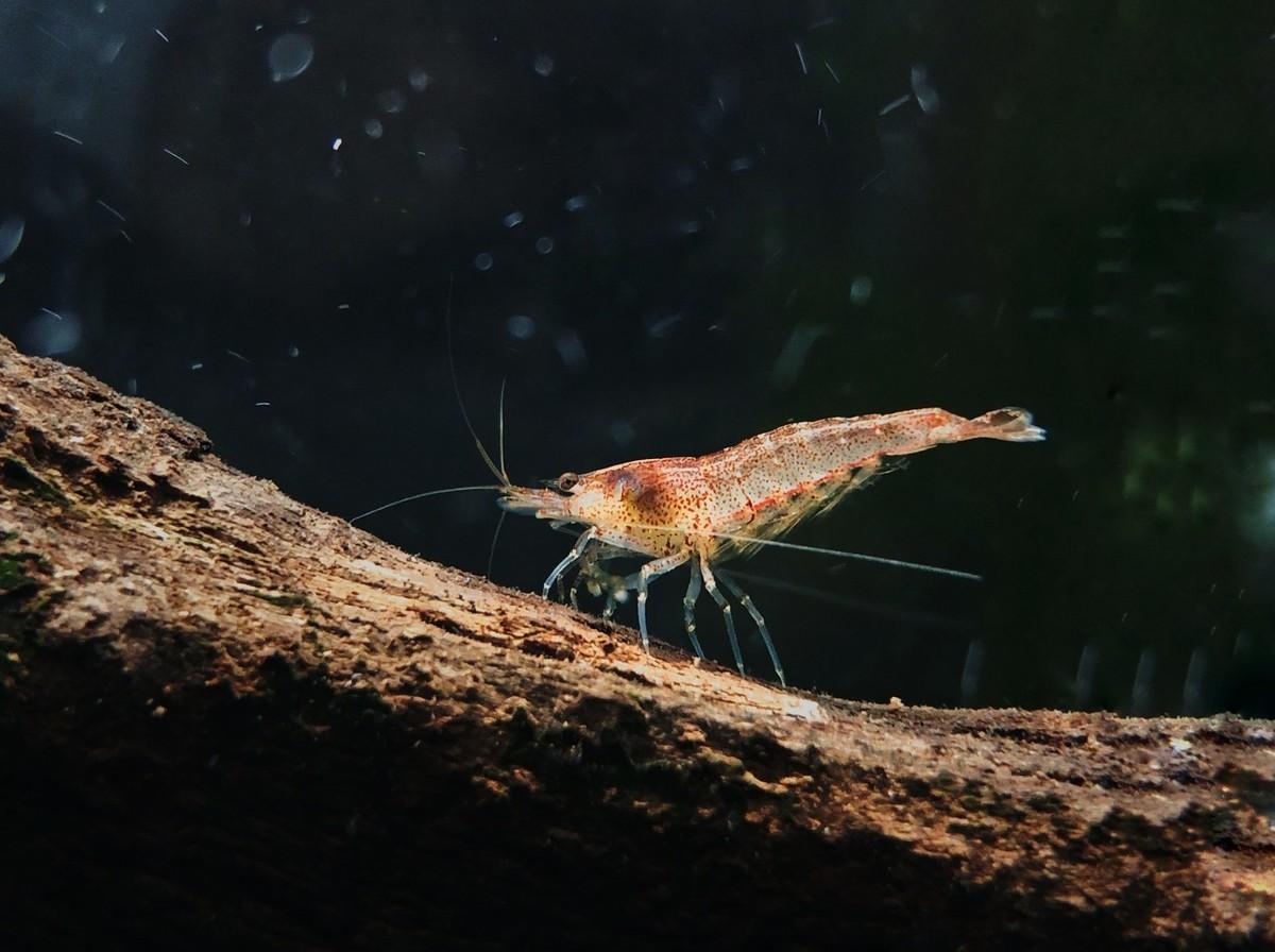 其次,我们在黑壳虾繁殖过程中减少换水造成水体动荡,更不要加入任何药物和其他影响水质的溶液。因为黑壳虾对水质变化也是比较敏感的,这也是为什么一开始要静待缸内滋生绿藻后才放入黑壳虾的原因,不稳定的水质不利于黑壳虾的繁殖。
