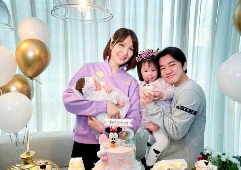 照片中,寿星李亚男穿着紫色连衣裙,披散着头发,化着淡妆,一手抱着老公送的花,一手抱着二胎女儿,满脸笑意,而一旁的王祖蓝则是西装加身,一手抱娃,一手端着给老婆准备的蛋糕,对着镜头露出同款幸福微笑,幸福气息满满!而被抱在怀里的gabby和Hayley则是一个害羞地面对镜头,一个则是满眼懵懂,但也不难看出,两个女儿都和王祖蓝长得十分神似,特别是大女儿gabby,宛如复制粘贴。