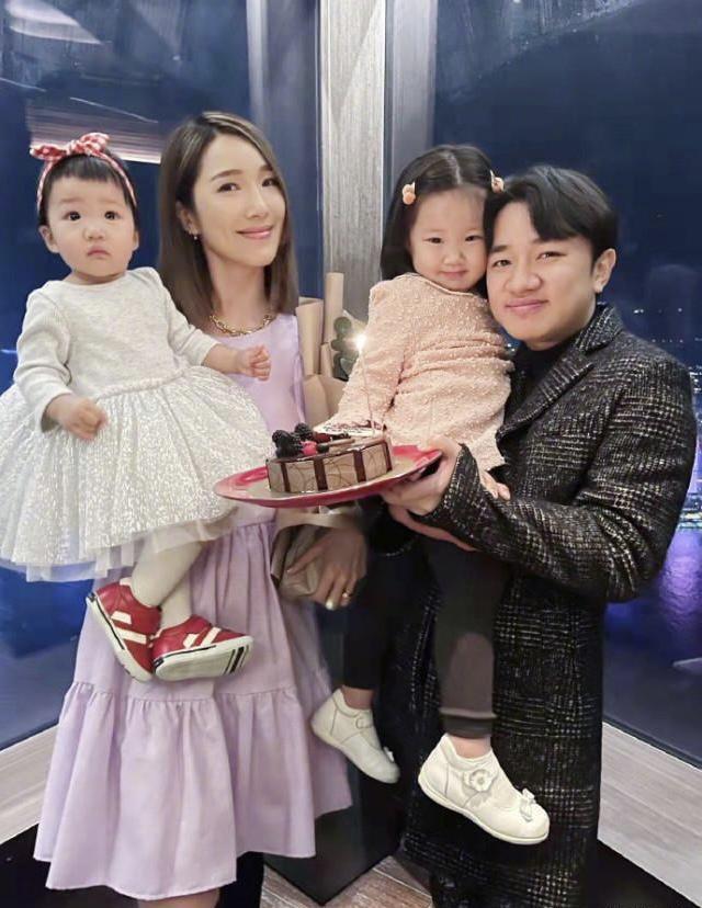 王祖蓝晒全家福为老婆庆生,圈错李亚男账号太尴尬,基因强大两女儿都像爸