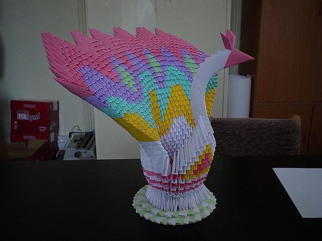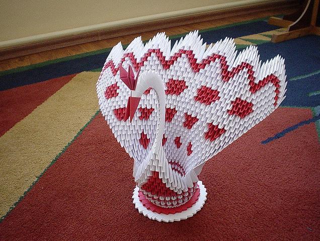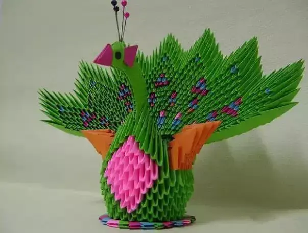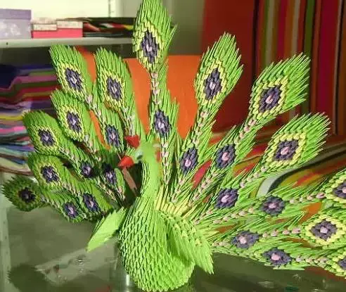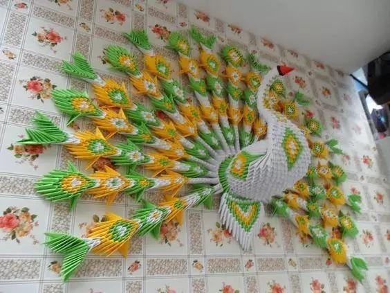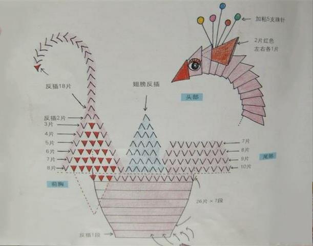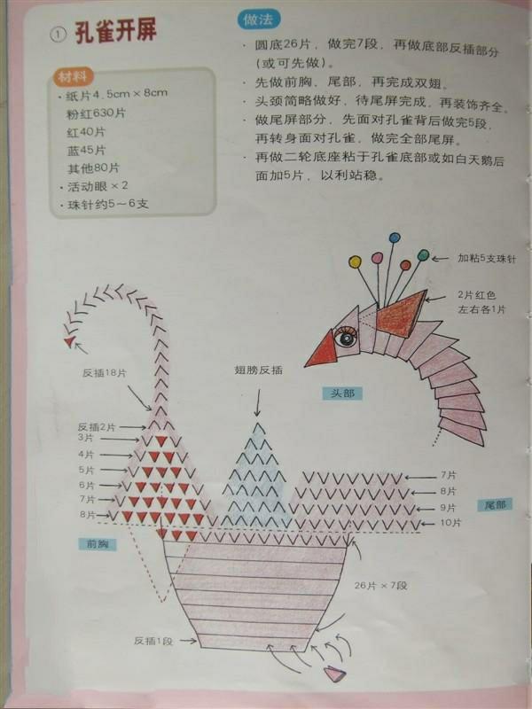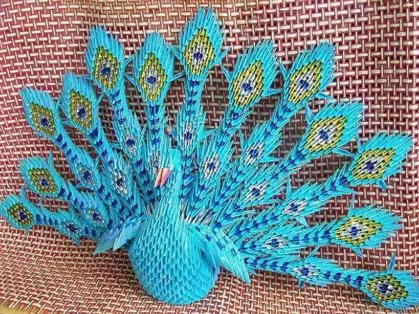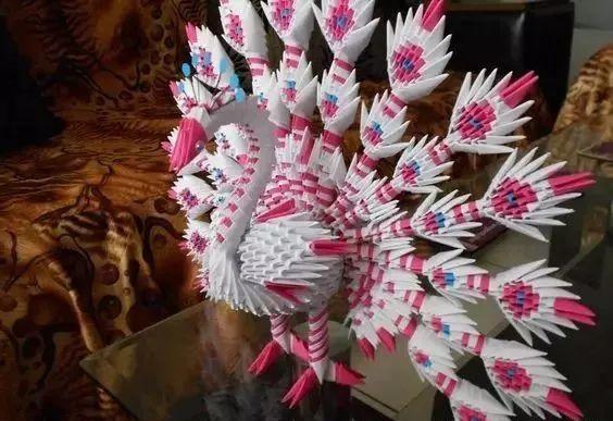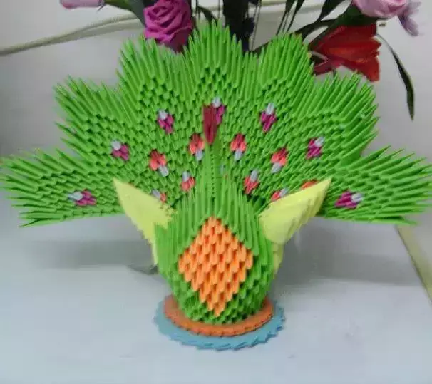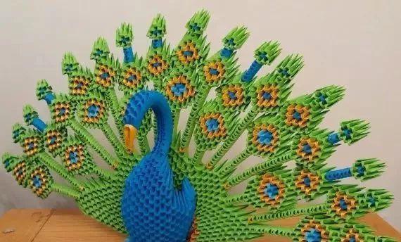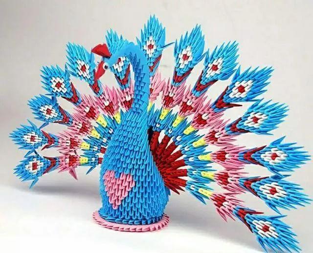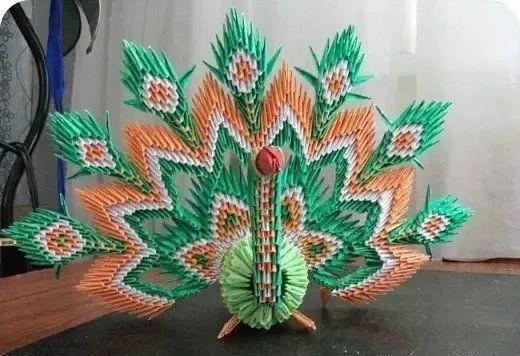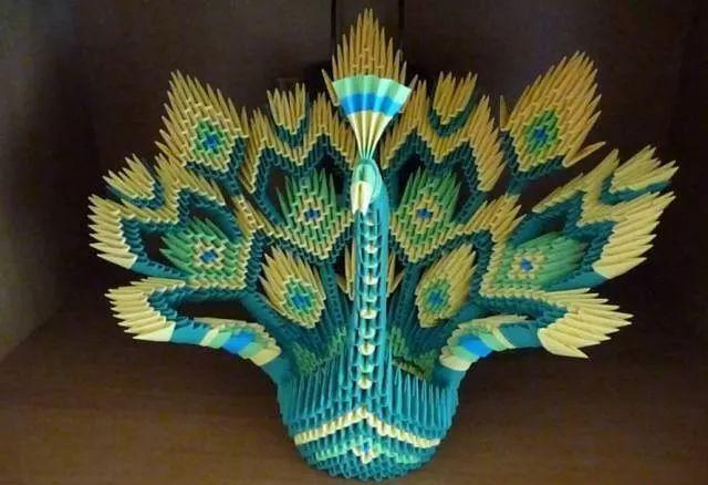 三角插孔雀成品确实是美,要折这样一只孔雀,任务也是艰巨,需要折取很多个三角插,大家要有耐心。不过越是难以完成,完成之后就越有成就感呢。