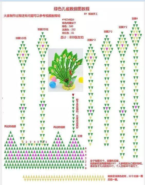 小小的三角插纸,只要数量多,就能拼出一只超美的孔雀,附教程